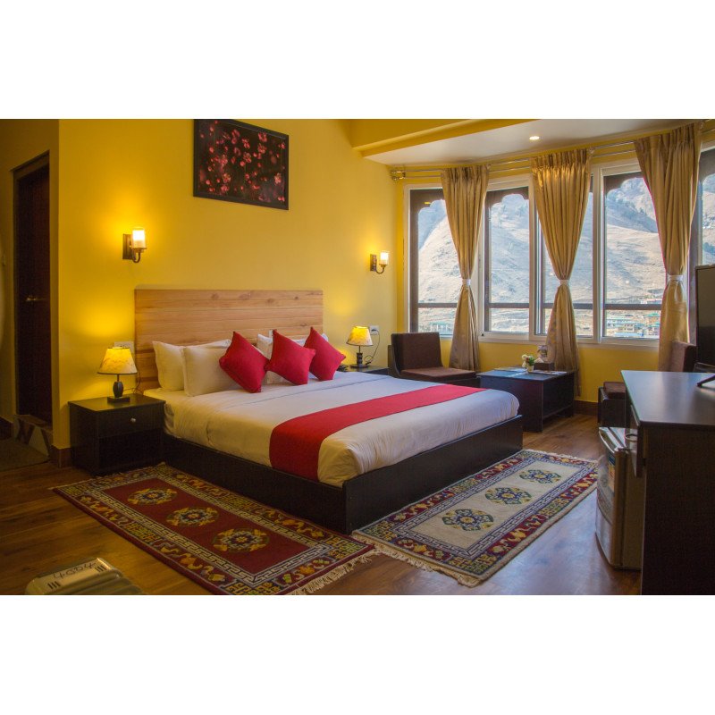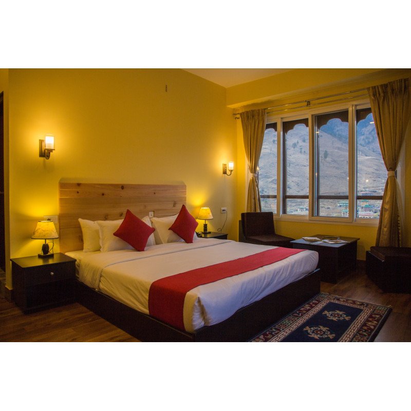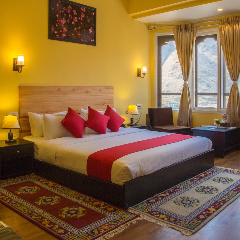 Our Deluxe King Front View Room offers a magnificent panorama of the Kuensel Phodrang mountains, with the Wangchu River flowing gracefully southward from the base of the hills. The view captures a rare harmony between mindful urban living and the serenity of nature, allowing guests to experience Thimphu’s landscape where spiritual heritage, flowing waters, and gentle city life coexist in perfect balance.